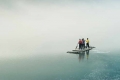 第二天一早我和团长5:30起床,到门口等着大家,由于修路车子晚到了,大家十分焦急,两部车到后,我们坐车到东江,这时已经有些人在这里了,我们下来跟在大家拍摄,昨天的那人又来收钱,每人10元,拍摄了一下,团长和大家觉得这人撒网不行,我们就自行到上游去拍摄,江上的雾时大时小,太阳也慢慢的爬上来了,我们急于找到一个模特,于是团友自动租了两条竹筏,在雾漫漫的江上漂流,这些漂流的竹筏在江上,就如同走在云中,行在仙境里。