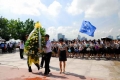 只到9点多钟云才惶开,太阳露出脸来,今天来山上的人许多给小平跪拜、还有许多献花者。