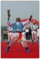 玩石锁的绝大多数花式,都是在人体的中轴线上折腾,即鼻梁肚脐胯下,这样子人容易平衡,也有耐久力,能重复多次动作。但是也有别别窍——比如俗称“拎皮箱”:双脚并拢两腿紧贴,手提石锁扔出花式,由于接锁时的一股惯性,人的重心偏于一侧,往往脚下不稳会来一个趔趄、踉跄,连续做动作的难度就更大了,这个花式特别能看出耍锁人的力量、技巧和平衡。(CCN传媒图片网 曾小凤)