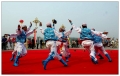 在河南省第六届少数民族传统体育运动会上,我就看到了玩石锁的场面。演员们在石锁面前站定,然后运气、提锁,只见石锁在他手中轻如蒲扇,上下翻滚左右旋转,各种花式走马灯般不停变换,看得我们眼花缭乱目瞪口呆。据一位玩石锁的老人说,石锁的玩法花样繁多,“拐磨”——把石锁横着平地拎起,到脱手高度时靠腕力让石锁与地面平行在空中旋转一圈,犹如拐磨转动,再抓住锁柄。这个花式特别讲究眼疾手快,初学时常常是抓不到锁柄,手指撞在旋转的石锁上碰得生疼,石锁还硬邦邦的一个落地整掼,很让人心疼。“掏螃蟹”——将石锁横着拎起到半空突然松手,然后手再迅速插到锁孔中,接着凭手腕手掌手指的力道将石锁横着翻滚一圈,再抓住锁柄。这个花式最容易伤害手指手背,风险很大。不练到一定火候是断然不敢尝试的。还有“背飞、提壶、反花、三指捻、胳膊顶、双人摔”等等,名目繁杂多了去了。