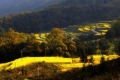 因为我们要赶在日落前到达江岭,去体验和感受那漫山遍野的油菜花世界,于是走马观花参观了汪口、思溪、晓起后,于下午5点到达美轮美奂的江岭。空气里油菜花的气息越来越浓,看到路牌上出现“江岭”的字样,我便打起精神。 我们花了80元在山下包了一辆车,司机非常热情,帮我们带到山上观景台。满山遍野的层层梯田,种满了油菜,好像给大地披上了一件“黄金甲”。远处零星的村落,白墙灰瓦特色建筑刻意镶嵌在花的海洋中,美得让人惊讶,让人心醉。 观景台上十几门“大炮”依次排开,摄友们追捉夕阳下的美丽。记得香港摄影家陈复礼就是以江岭梯田为对象创作了著名的《天上人间》,一举拿获国际摄影大赛金奖。眼前,真实的江岭在黄色的清香和柔软的春风里扑面而来。那时天色空蒙,青山如黛,我站在海拔千米的山坡上,俯望梯田,但见满目烁金,灿烂而宏阔。它似乎在向我炫耀一种气势——一种由数量造成的又不仅仅体现数量的气势!这种气势像巨浪般滚滚而来,在几秒钟之内就把我彻底震慑住了。此时此刻,哪里还能分清是天上还是人间阿。