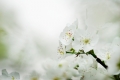 拍好梨花着实不易。为了表现梨花的素雅和轻曼,我没有运用选取大景的方法去刻画花团锦簇的热闹,而是通过特写的手法去演绎梨花的细节。刻意借助近处的梨花作前景,以前景中梨花空隙产生的衍射光线去遮掩主体,使主体处于大面积的高调当中,就像蒙上一层迷离的轻纱。细看之下,朵朵梨花轻盈如少女披纱蔓舞,顾盼之间流露出楚楚动人、欲语还羞的娇态……