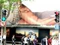 Shanghai CBD – Street sign about well-known western rock star – significant beyond the traditional. Protectionists photo strategy to focus exclusively on image recognition blown to huge scale line of trees cushion image impact on this side street. So make conveying image information harder to read - the original photographer (unknown) in making art statement – but making it not too offensive for passing of viewers hourly. Necessary in order to insure the reference image maybe properly understood – outstanding art photo works.